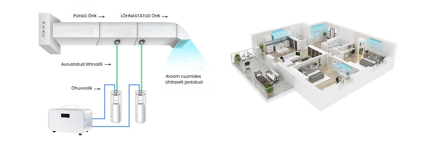 Nutikas Bluetooth-juhtimine, vaikne töö ja sisseehitatud ventilaator võimaldavad luua täpselt juhitud aroomikogemuse – olgu selleks kontor, hotell, kauplus või vastuvõtuala. Sobib nii eraldiseisvaks paigalduseks kui ka ventilatsioonisüsteemiga ühendamiseks.